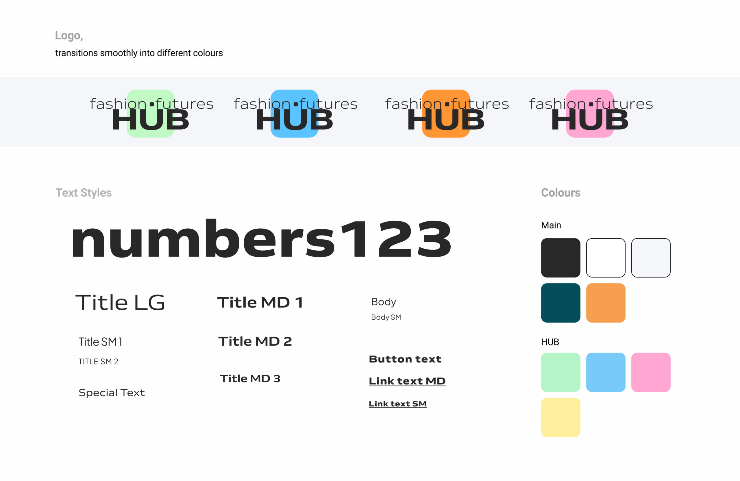 - The Hub has its own set of colours to create a division between the main site and “the hub”.